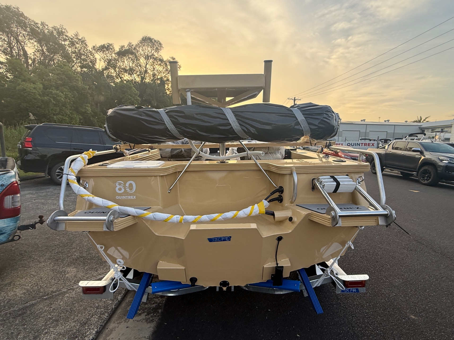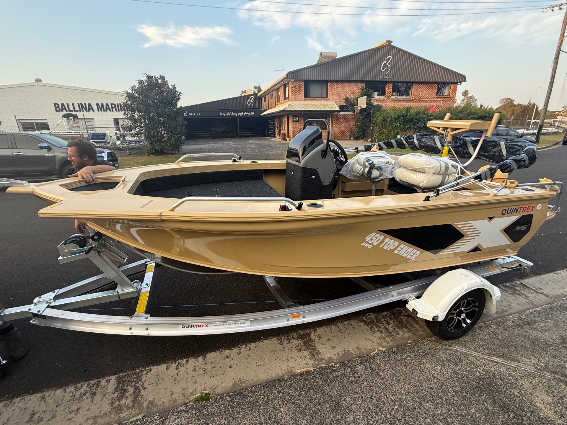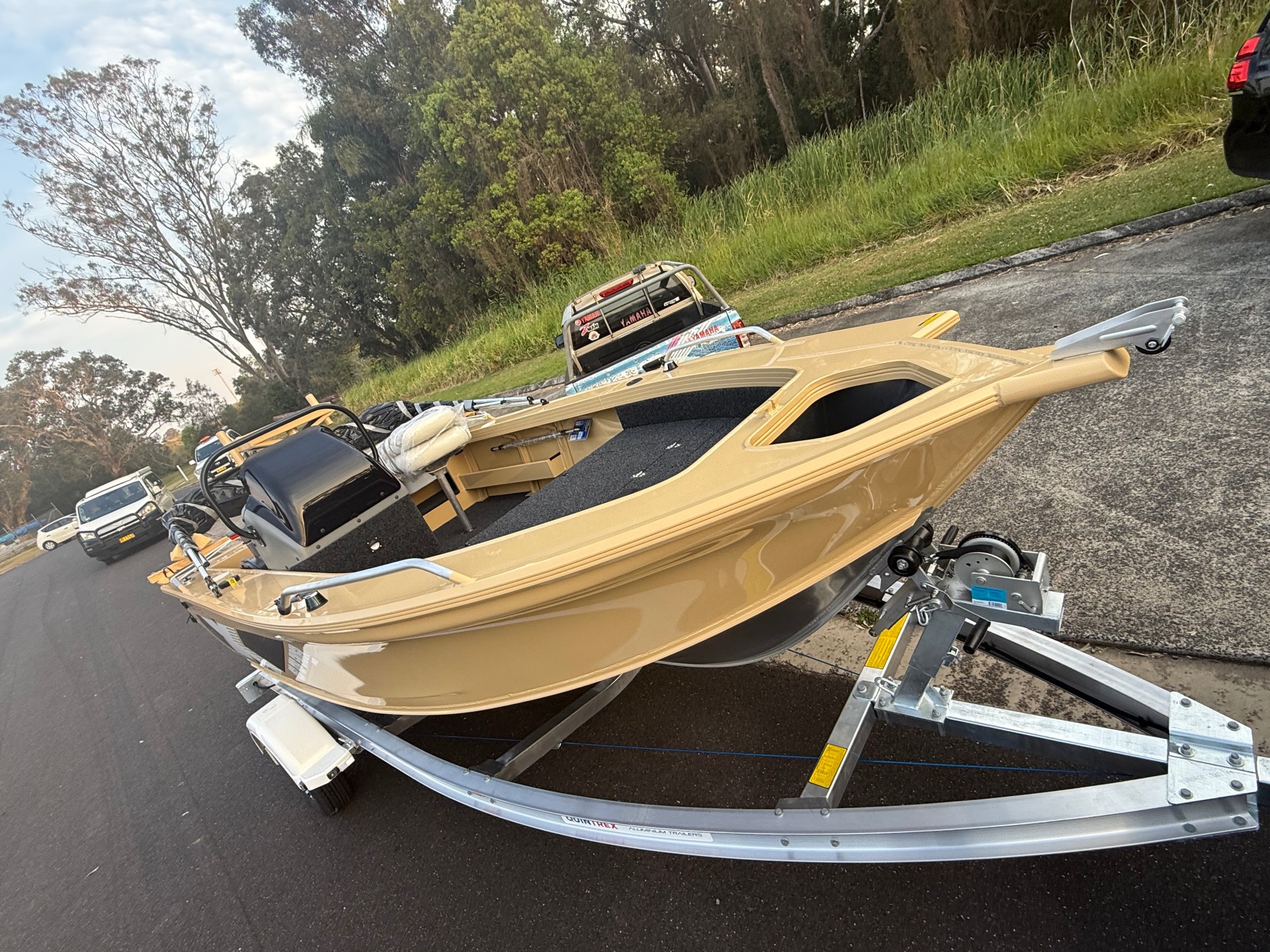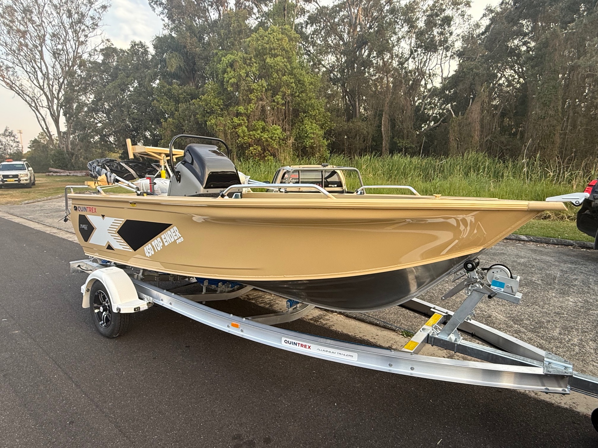 80th Anniversary - QUINTREX 450 Top Ender Pro - All Quintrex Standard and PRO Features with ALL OVER painted hull in Sandbar. NO WHITE !!
